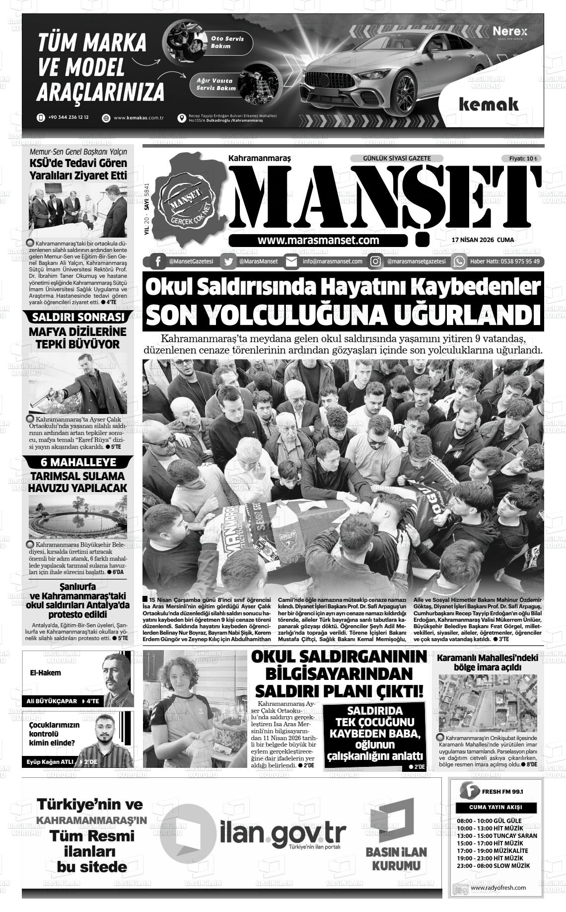 KAHRAMANMARAŞ MANŞET